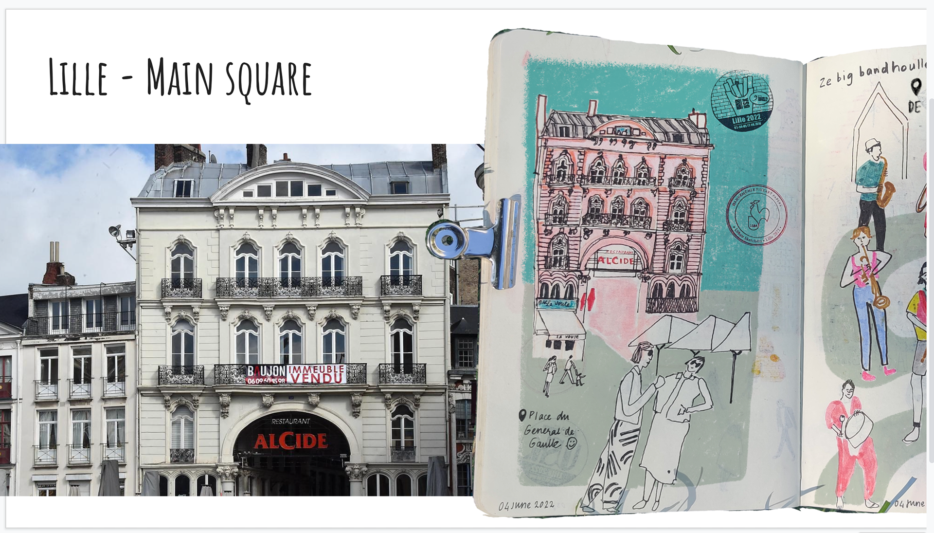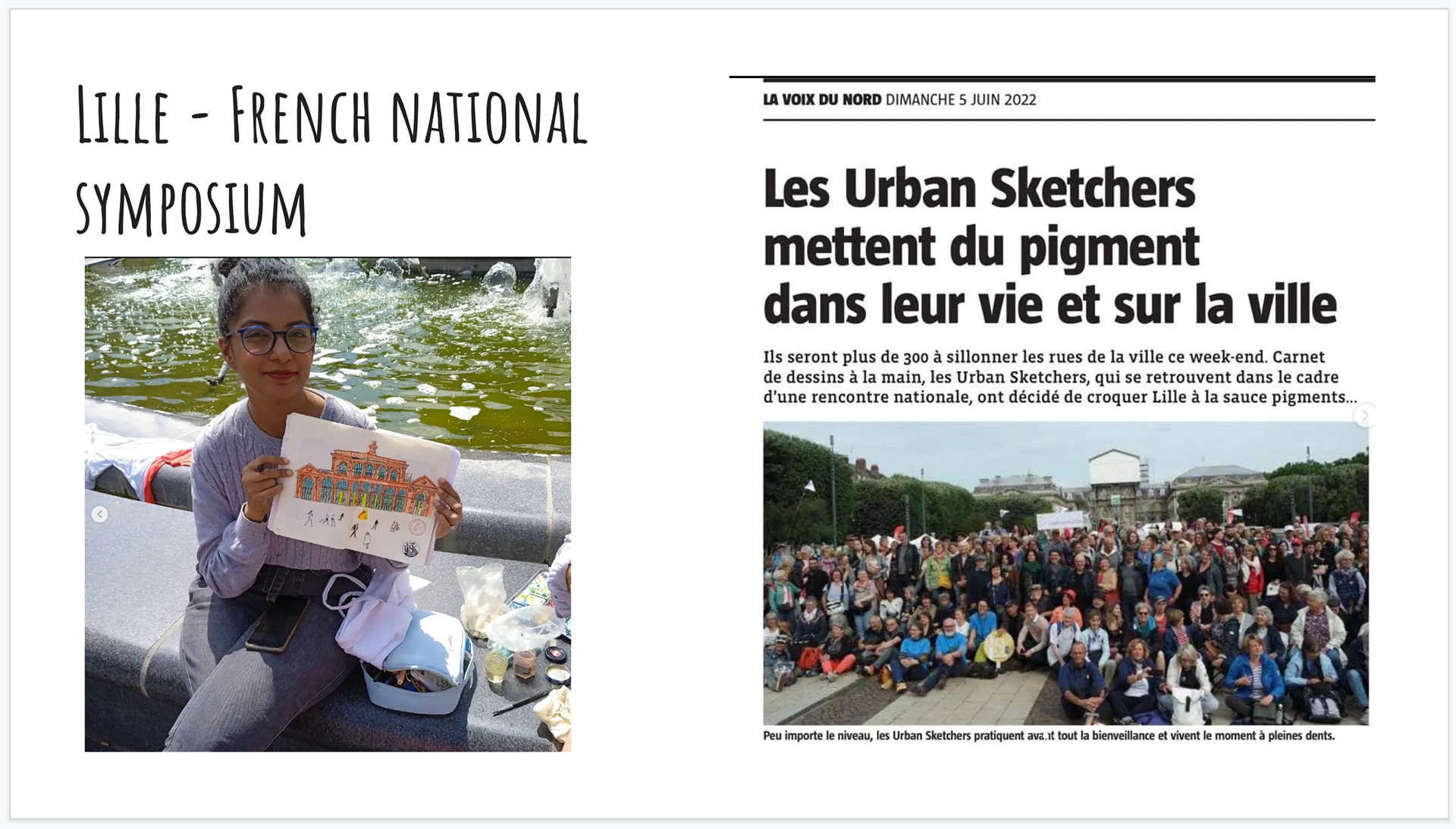 I was very lucky to join USK Paris in the last week of May, because in the month of June I could attend the French National Symposium at Lille. It was 4 glorious days of sketch-walking, they provided us 5 routes, which we could choose from, form our own groups and draw whichever subject pleased us. Every evening we all gathered and shared our work over drinks and dinner.