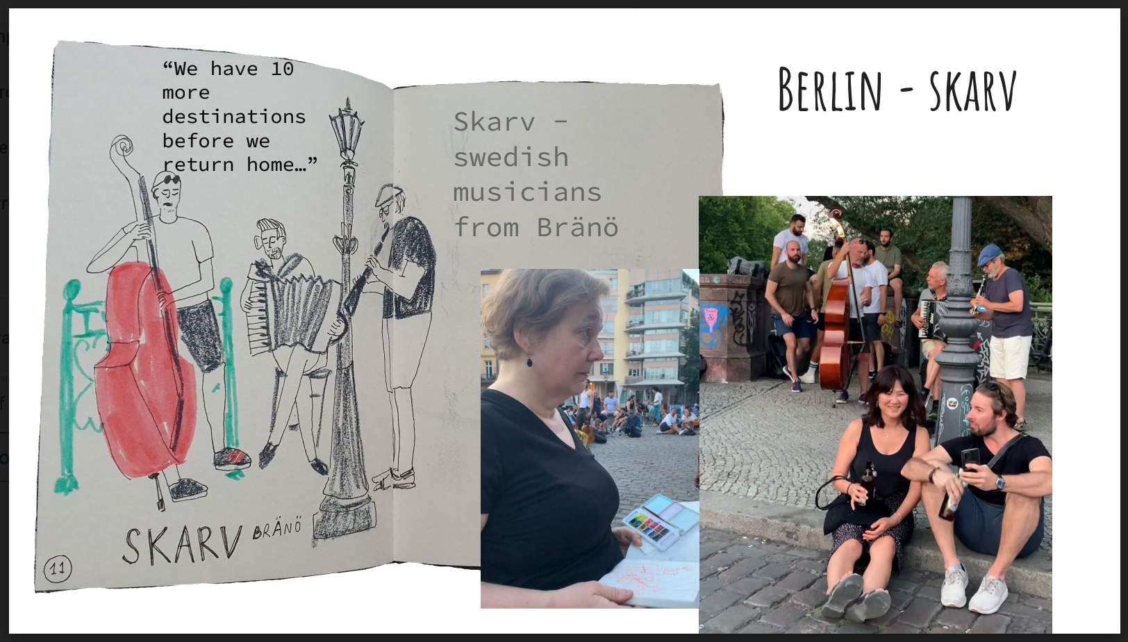 We also met and drew Swedish musicians, who we had a lovely chat with later.. They informed us that they were on a Europe tour on a shoestring budget and Berlin was their 7th destination and that they had another 10 places to go before returning home to Sweden. And it's time for us to say goodbye too, because we are moving on to our next destination