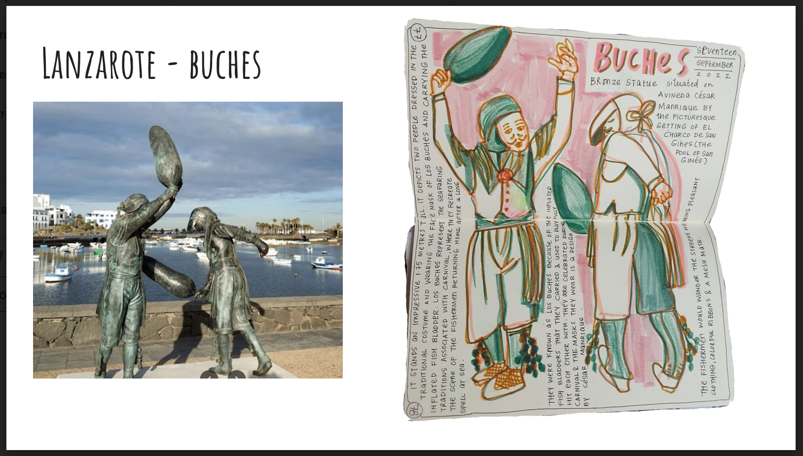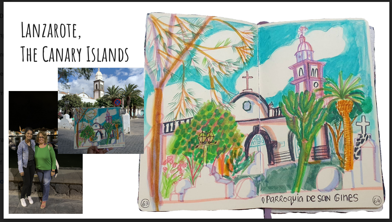 Lanzarote is in the Canary Islands in Spain. Disclaimer : when I learnt that we were meant to go there to attend a friend’s wedding, I began planning for this trip asap. Oh, no, I wasn't thinking about what to wear, but more so ever, sending messages to USK Lanzarote to know if they can meet for a sketch walk, places that I could draw? Since it wasn’t a weekend, Barbara was very kind to meet me for dinner, where we did some food sketching over chatter, and she was also kind enough to help all the wedding guests with food recommendations, places to see, and we spent a wonderful evening with her. Featured here a beautiful Church in Arreciefe, the capital city of Lanzarote. Saint Gines is the patron Saint of Arrecife. Barbara told me that this church has some features designed by Cesar Manrique, who is a very celebrated local artist there, who helped give Lanzarote it's unique identity