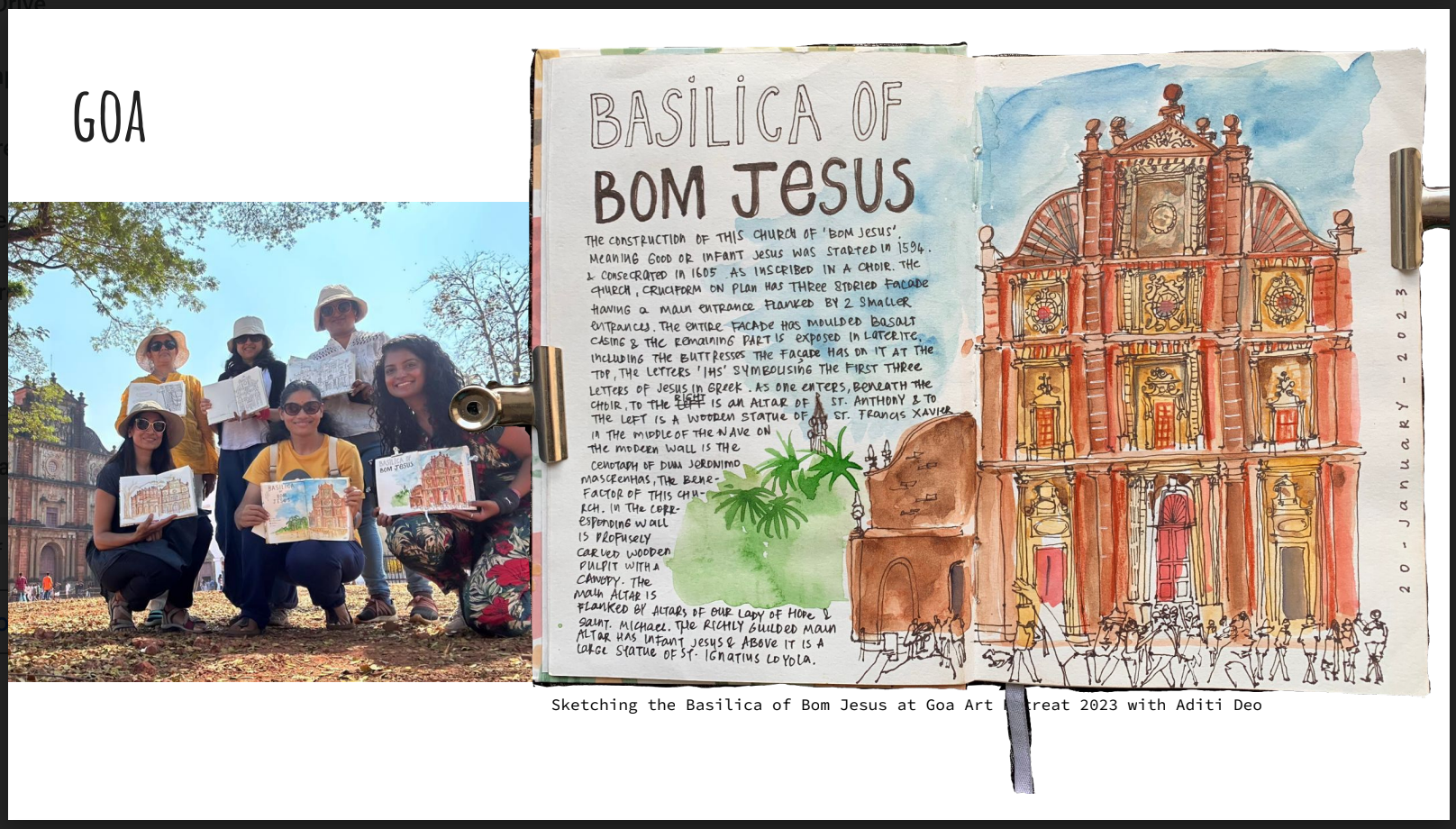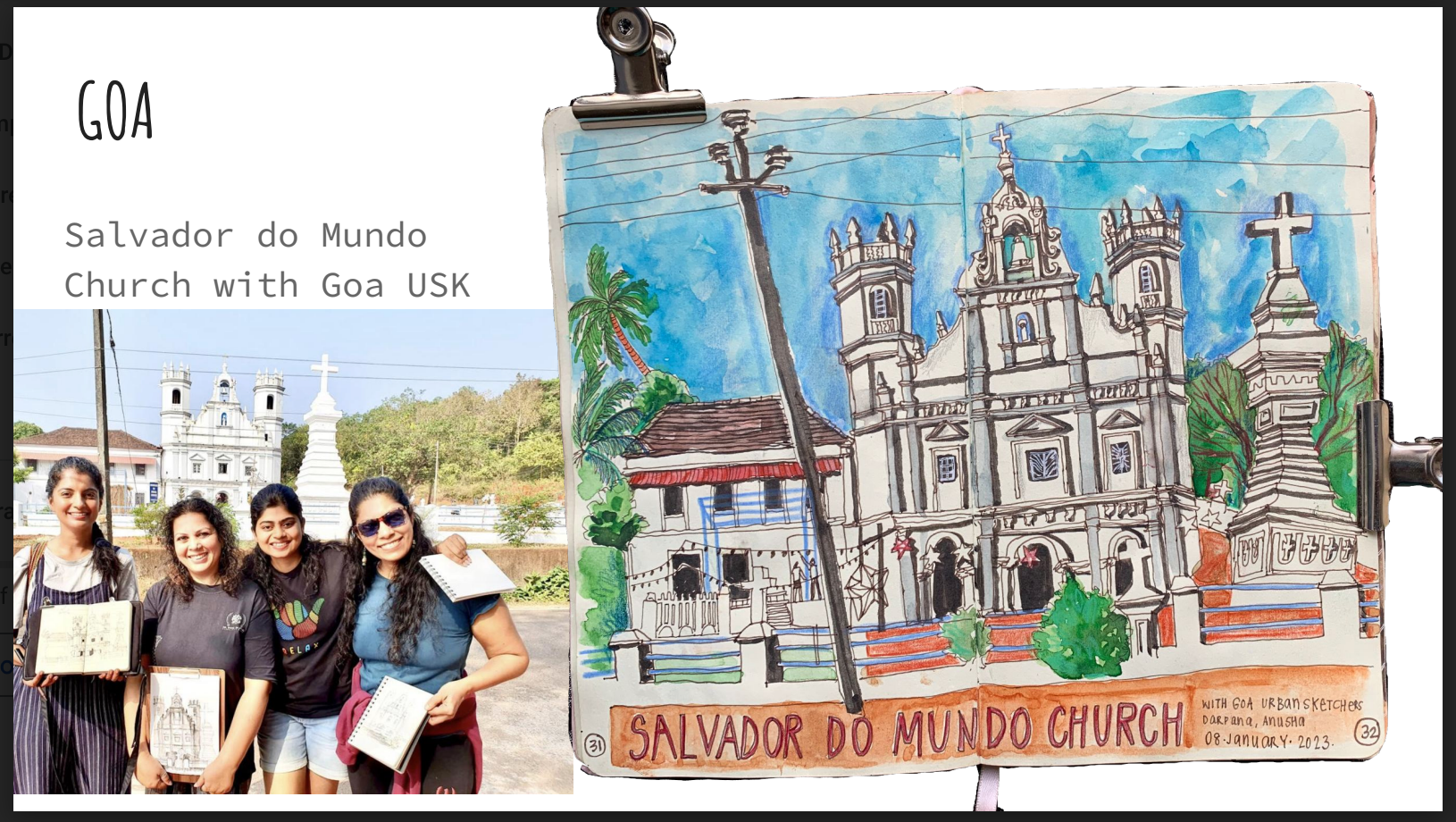 With that let's see our new destination, Goa. Here I'm with Goa Urban Sketchers, we drew the Salvador Do Mundo Church, which is near Pomburpa. Afterwards, we shared a lovely Goan breakfast together of mixed bhaji and poie