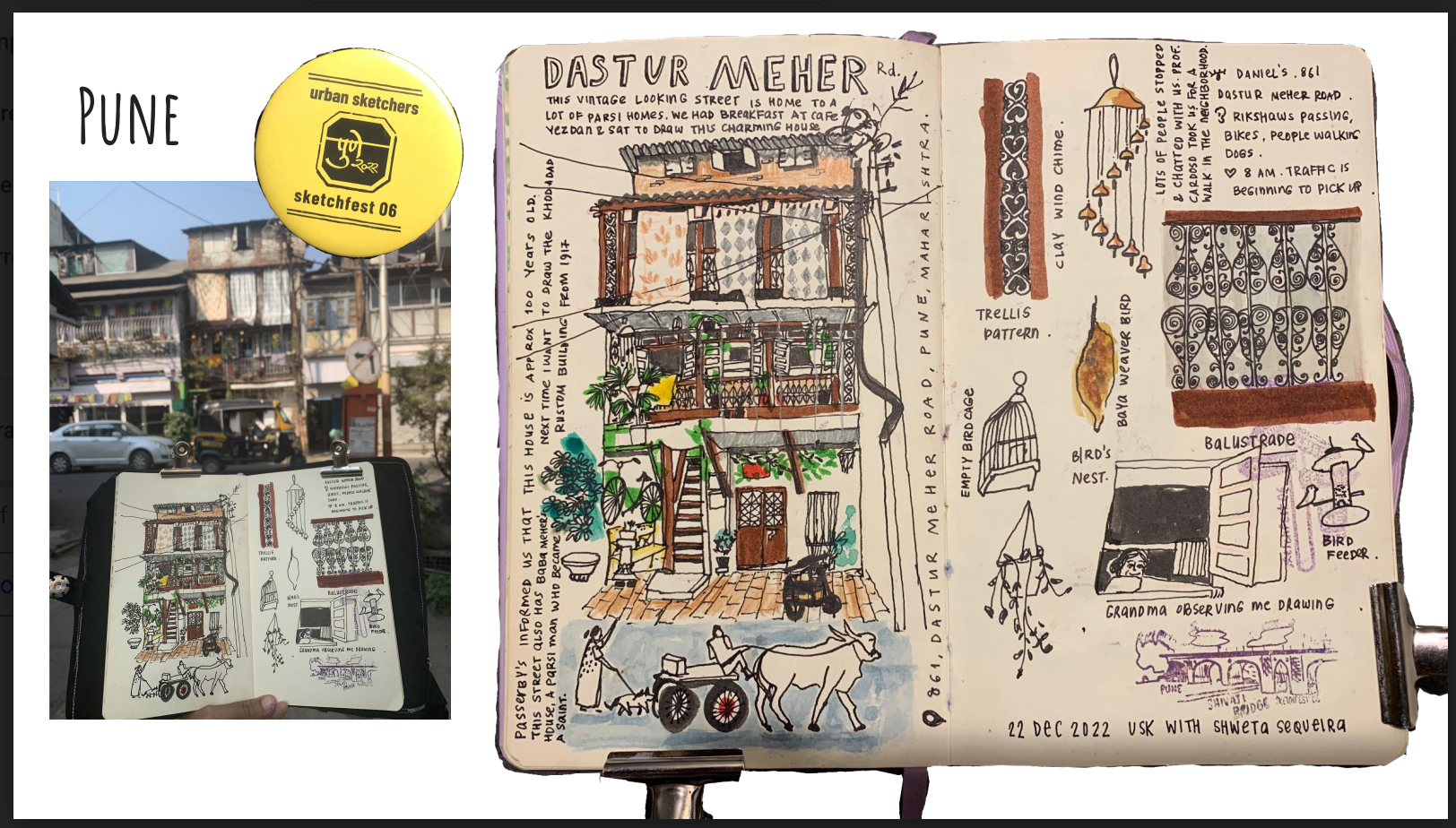 While I've called Pune home for over 16 years, I had never drawn this city. So it was a resolution to do that this time. My arrival to Pune, and the timing of Sketchfest was amazing. I had the best time of my life, walking through and drawing the streets of Camp, sharing a chai with new buddies. I found my favorite street - Dastur Meher Road, all the buildings here are so charming!