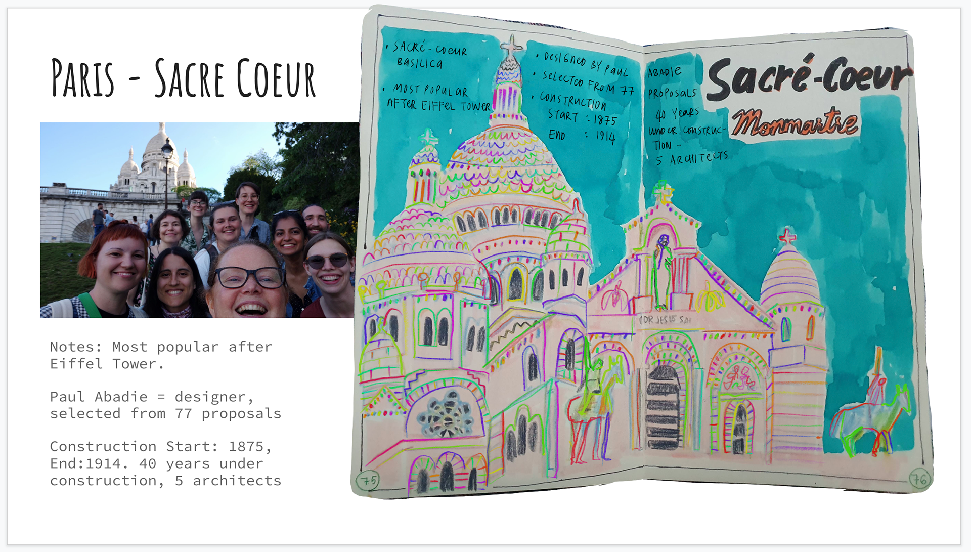 Next we tackled buildings, and fell in love with the aesthetics of Monmartre, so we chose to draw the Sacre-Coeur.