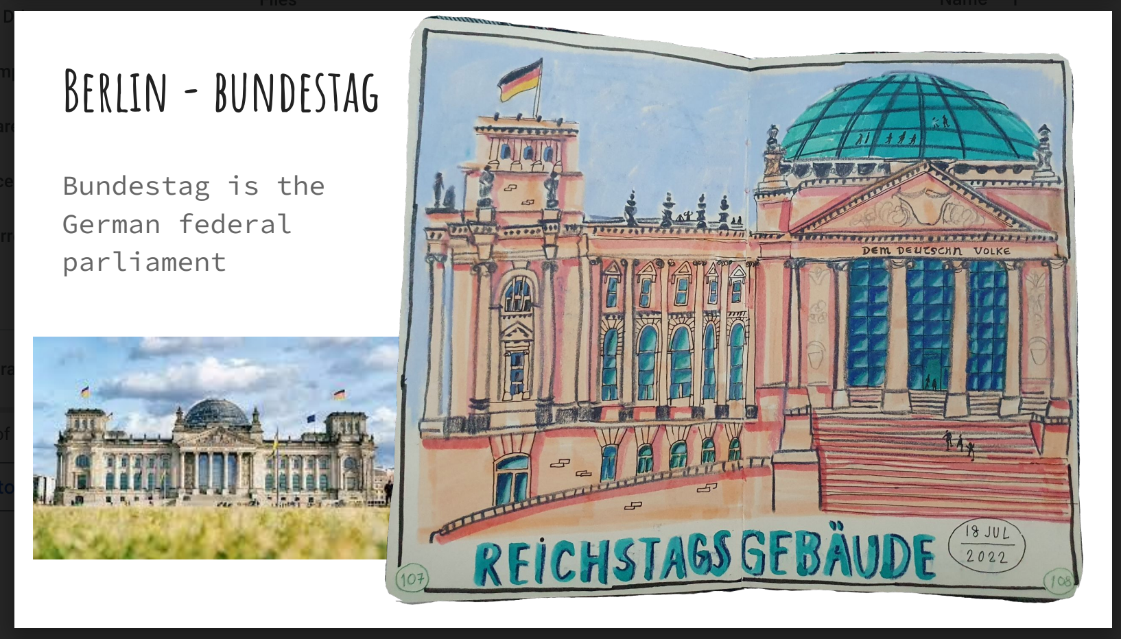 I was visiting my brother in Berlin, and while he was working I slipped out for some solo urban sketching and visited the Bundestag - which is the German federal parliament